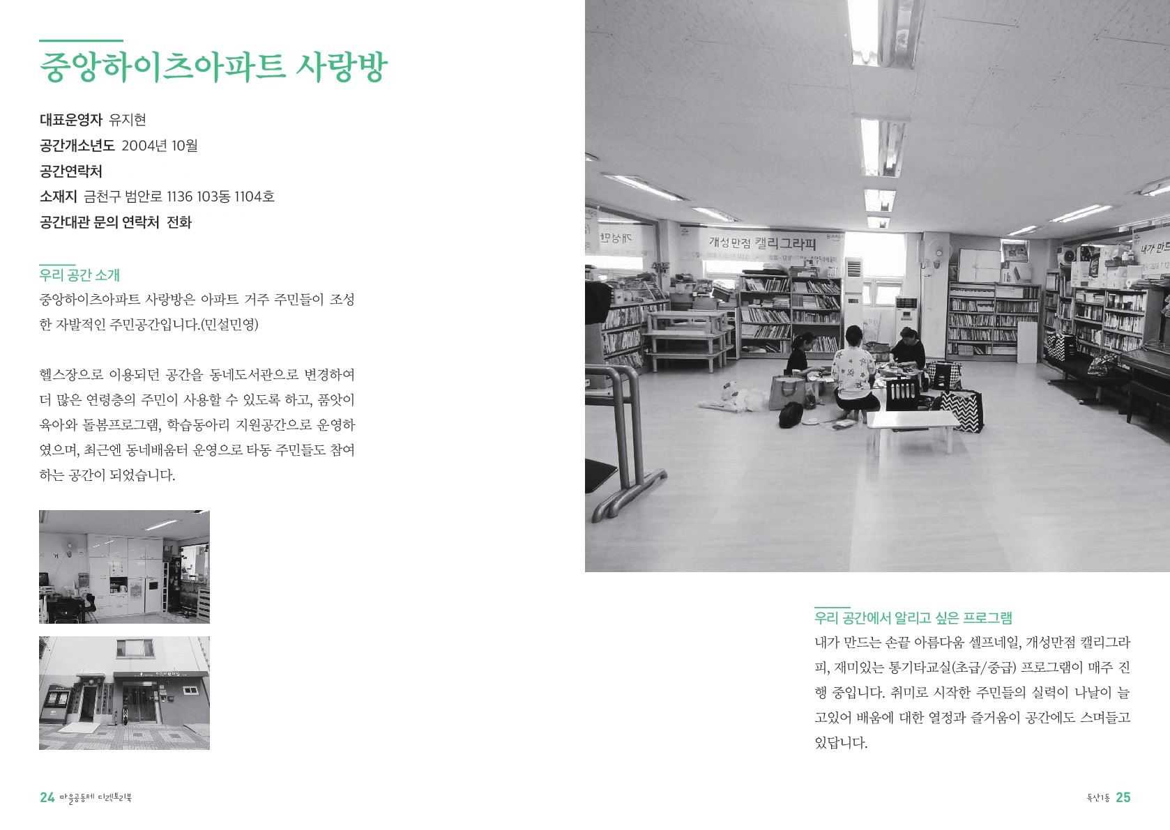 독산1동 중앙하이츠아파트 내에 위치한 커뮤니티형/도서관형 주민공간 (중앙희망지기 운영)