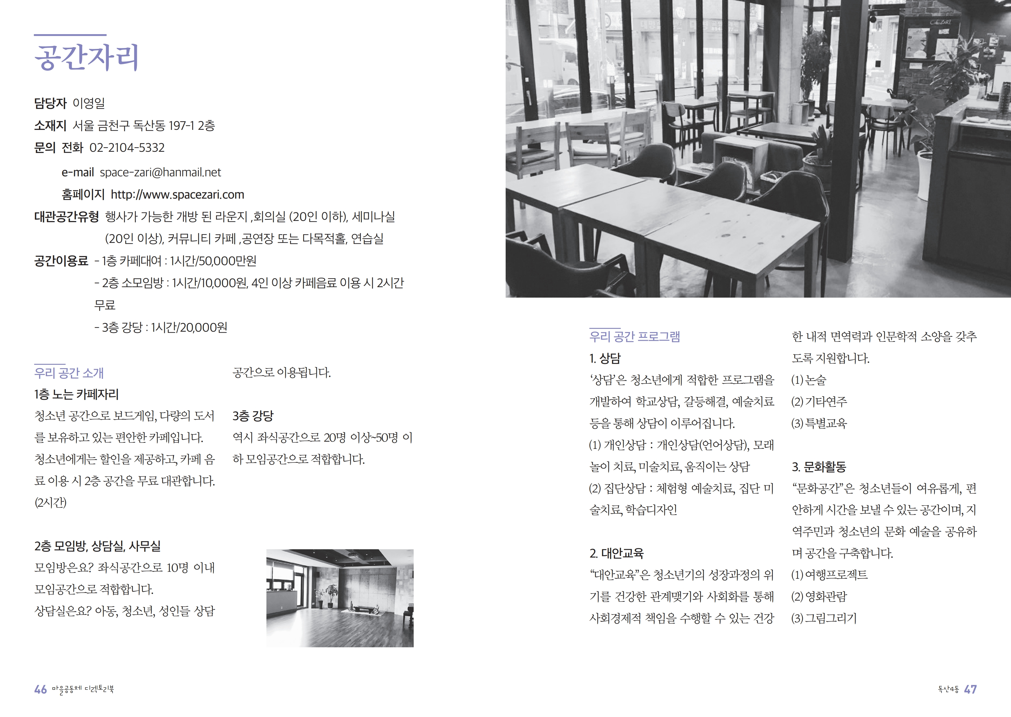 2층 소모임방: 1시간/ 10,000원, 4인이상 까페 음료 이용 2시간/무료