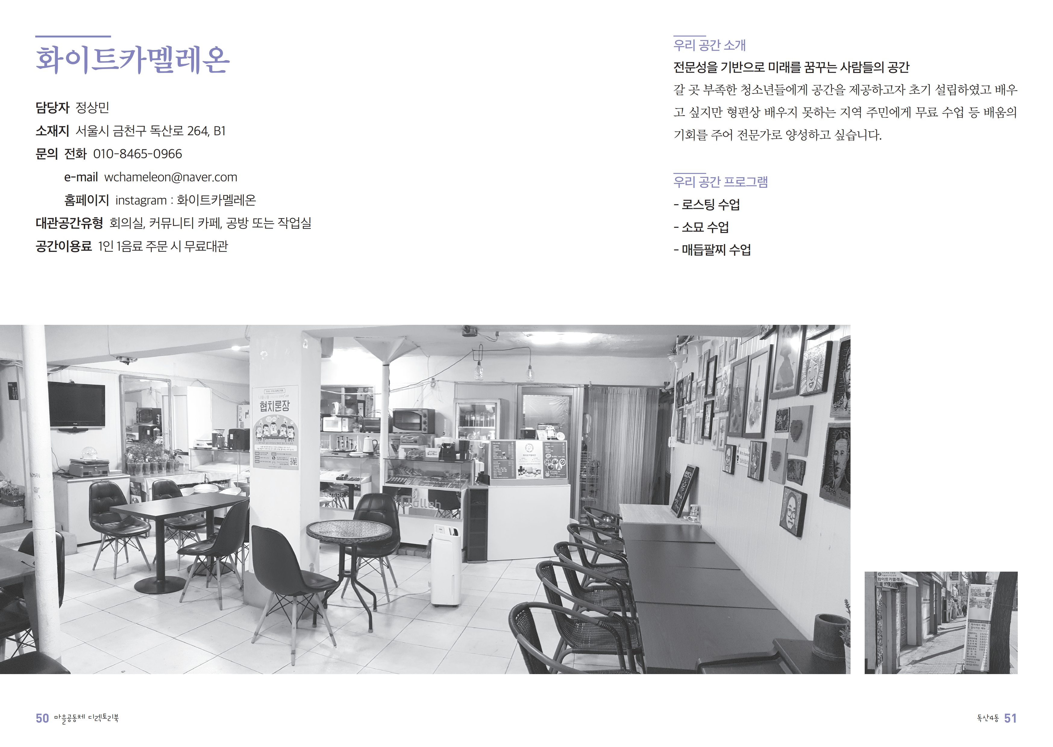 화이트카멜레온 2019-12-27 11:54:08 instagram:화이트카멜레온 * 대관, 대여 가능한 공유자원을 함께 적어주세요. 1인 1음료 주문시 무료대관 LIST 이전금천노인종합복지관2019.12.27 다음금천호암노인종합복지관2019.12.27