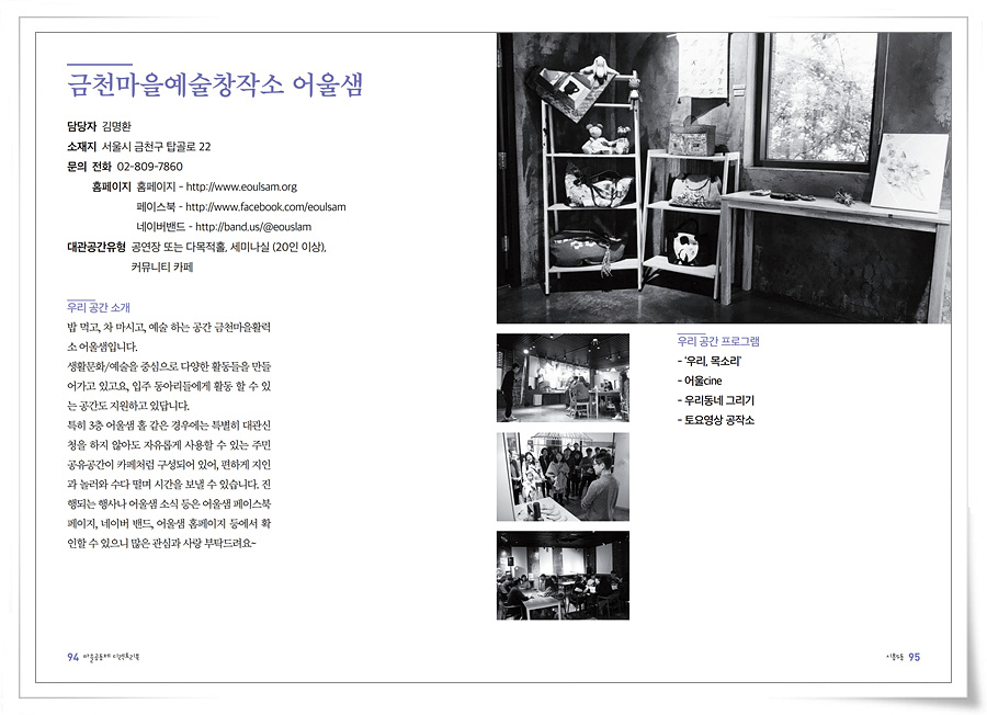 밥 먹고, 차 마시고, 예술하는 공간 금천마을활력소 어울샘입니다.