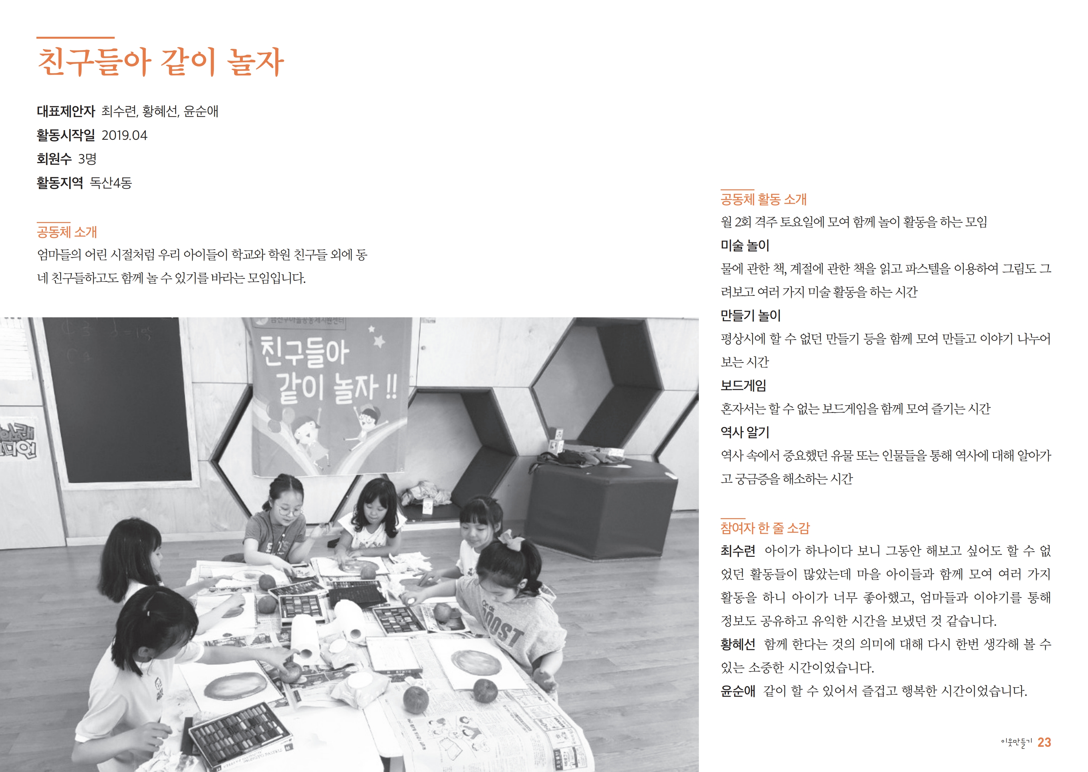 2019이웃만들기-친구들아 같이 놀자 2019-12-23 10:14:09 LIST 이전2019이웃만들기-봉제동아리 '한 땀'2019.12.23 다음2019이웃만들기-은행나무2019.12.23