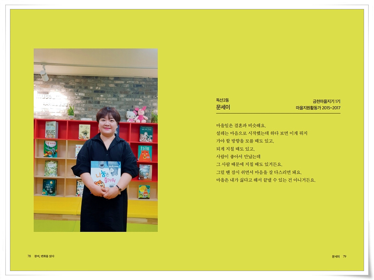금천사람들 인터뷰 기록집Vol.1_ 독산2동 문세이 2021-03-18 15:26:27 금천사람들 인터뷰 기록집Vol.1_ 독산2동 문세이 ▼아래 이미지를 누르시면 크게 보실 수 있습니다 LIST 이전금천사람들 인터뷰 기록집Vol.1_ 독산2동 박미현2021.03.18 다음금천사람들 인터뷰 기록집Vol.1_ 독산2동 고경미2021.03.18