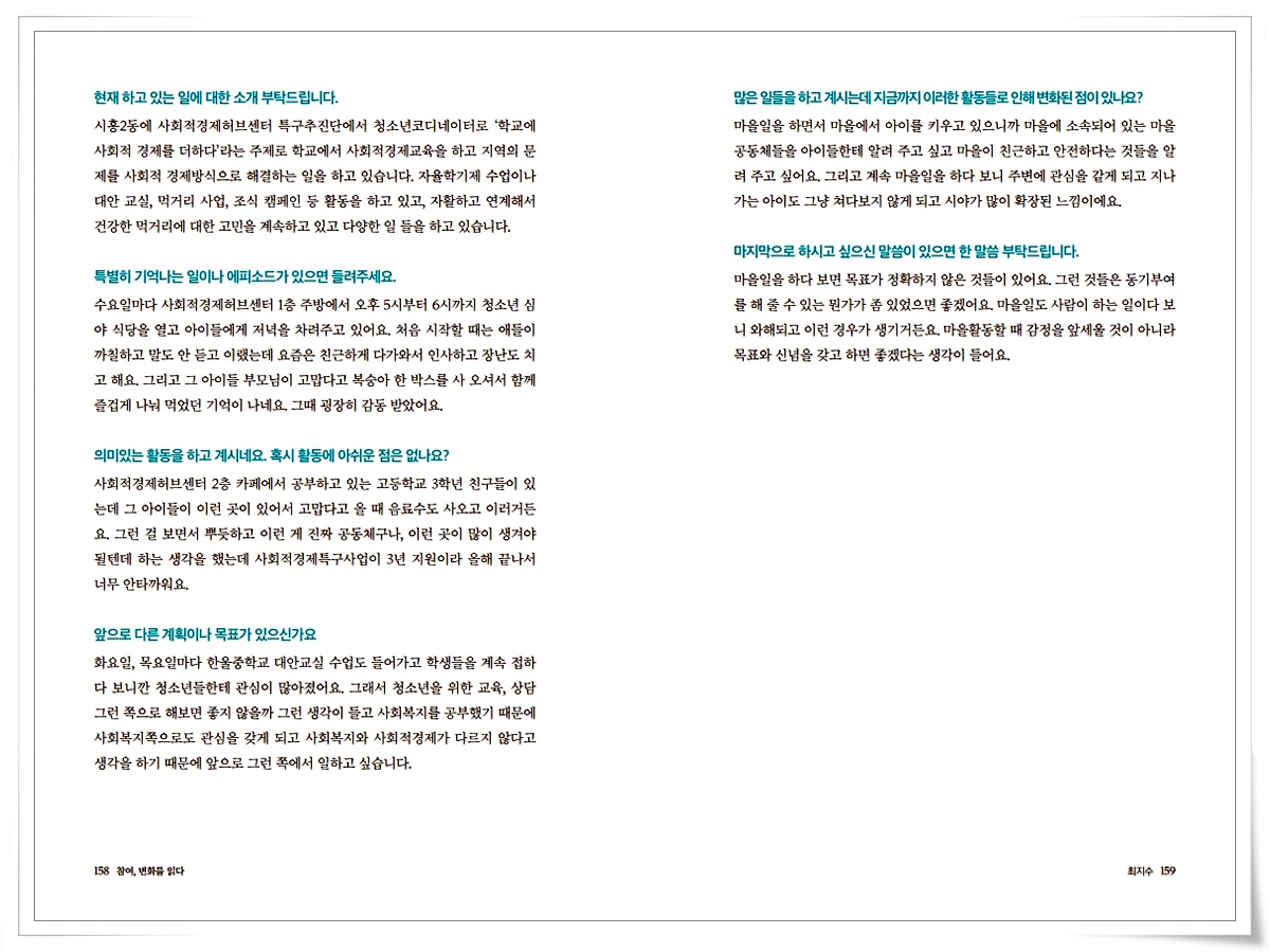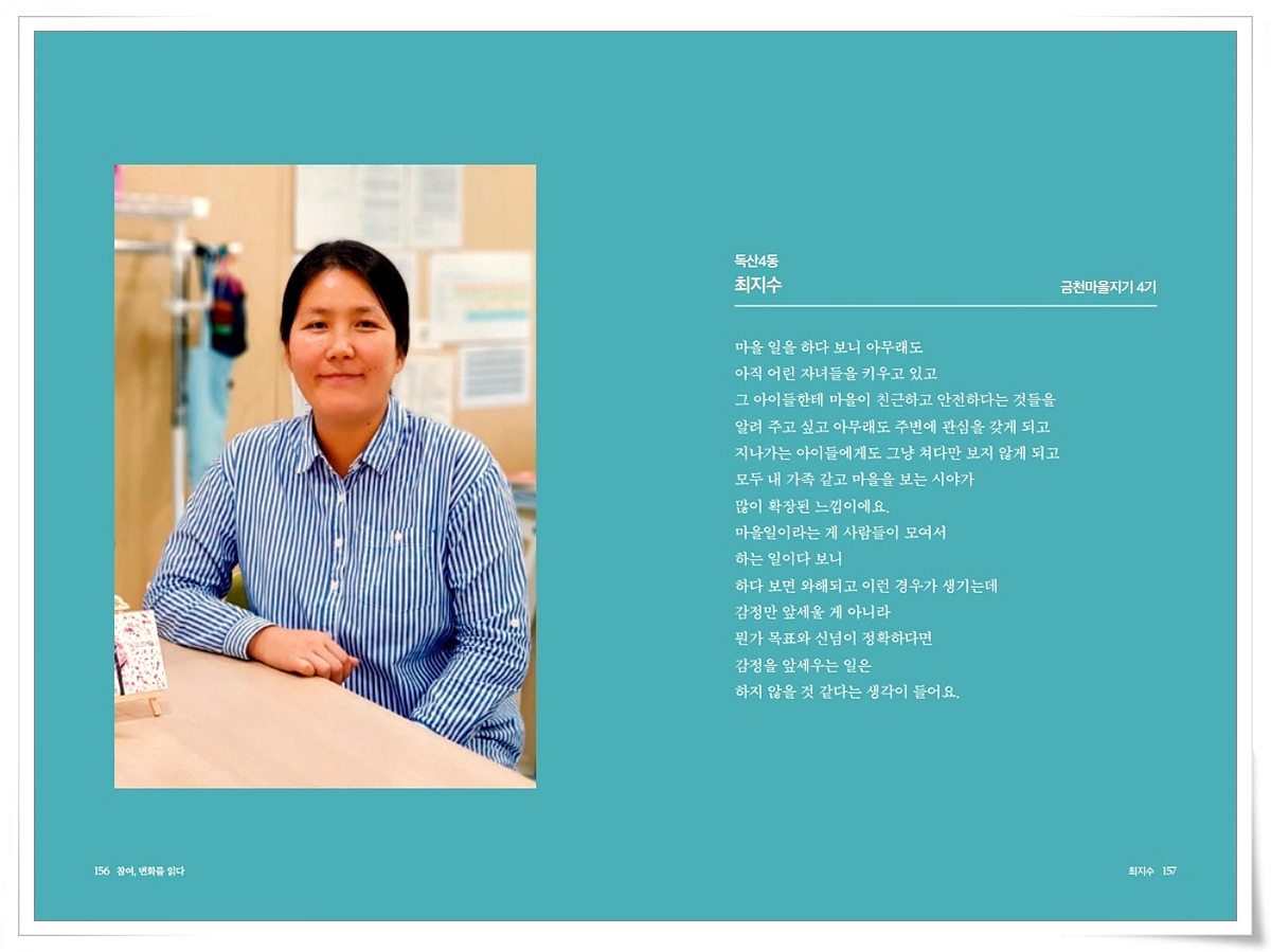 금천사람들 인터뷰 기록집Vol.1_ 독산4동 최지수 2021-03-18 15:49:36 금천사람들 인터뷰 기록집Vol.1_ 독산4동 최지수 ▼아래 이미지를 누르시면 크게 보실 수 있습니다 LIST 이전금천사람들 인터뷰 기록집Vol.1_ 시흥1동 김미선2021.03.18 다음금천사람들 인터뷰 기록집Vol.1_ 독산4동 조연주2021.03.18