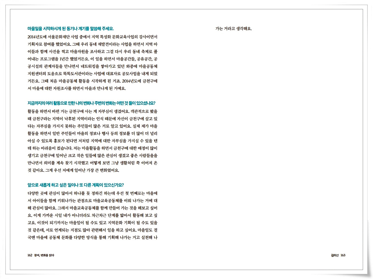 금천사람들 인터뷰 기록집Vol.1_ 시흥1동 김미선 2021-03-18 15:50:47 금천사람들 인터뷰 기록집Vol.1_ 시흥1동 김미선 ▼아래 이미지를 누르시면 크게 보실 수 있습니다 LIST 이전금천사람들 인터뷰 기록집Vol.1_ 독산1동 박춘옥2021.03.18 다음금천사람들 인터뷰 기록집Vol.1_ 독산4동 최지수2021.03.18