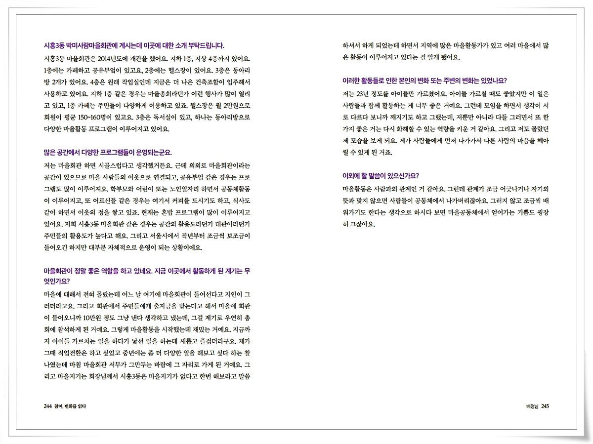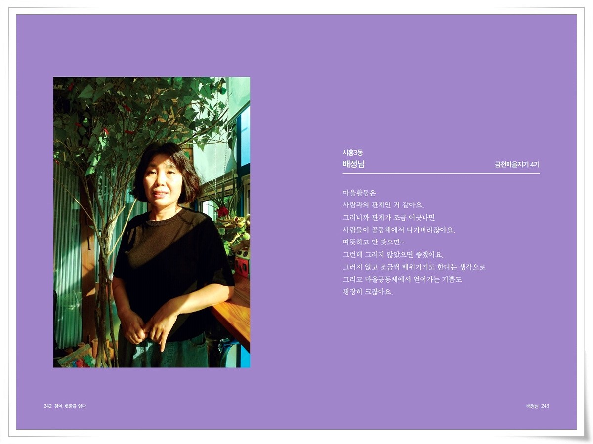 금천사람들 인터뷰 기록집Vol.1_ 시흥3동 배정님 2021-03-18 16:36:11 금천사람들 인터뷰 기록집Vol.1_ 시흥3동 배정님 ▼아래 이미지를 누르시면 크게 보실 수 있습니다 LIST 이전금천사람들 인터뷰 기록집Vol.1_ 시흥3동 서희경2021.03.18 다음금천사람들 인터뷰 기록집Vol.1_ 시흥3동 김민금2021.03.18