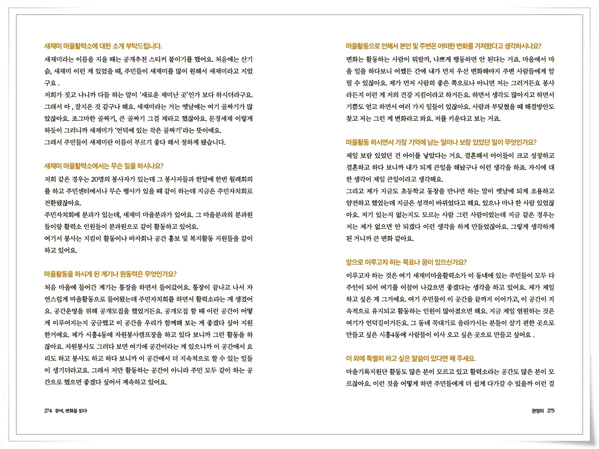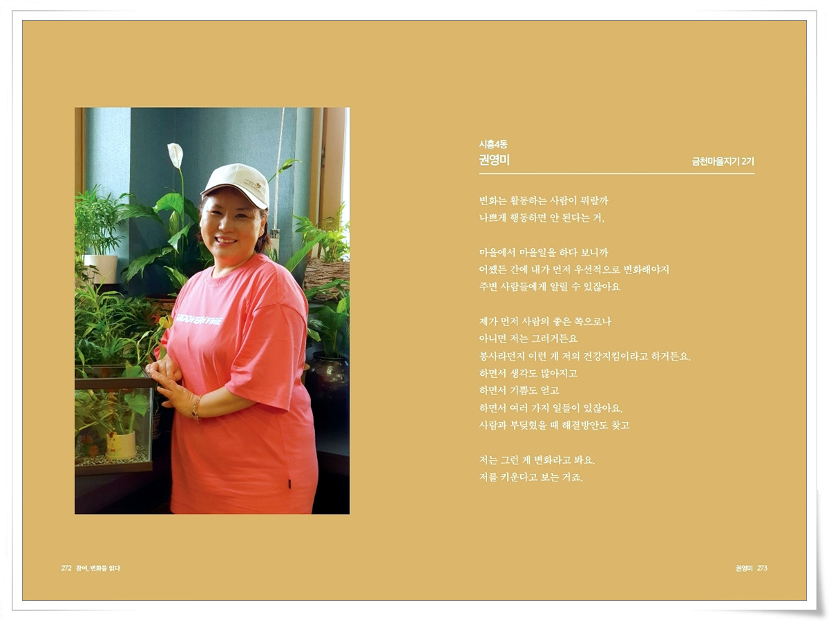금천사람들 인터뷰 기록집Vol.1_ 시흥4동 권영미 2021-03-18 16:41:35 금천사람들 인터뷰 기록집Vol.1_ 시흥4동 권영미 ▼아래 이미지를 누르시면 크게 보실 수 있습니다 LIST 이전금천사람들 인터뷰 기록집Vol.1_ 시흥4동 백기성2021.03.18 다음금천사람들 인터뷰 기록집Vol.1_ 시흥4동 강영자2021.03.18