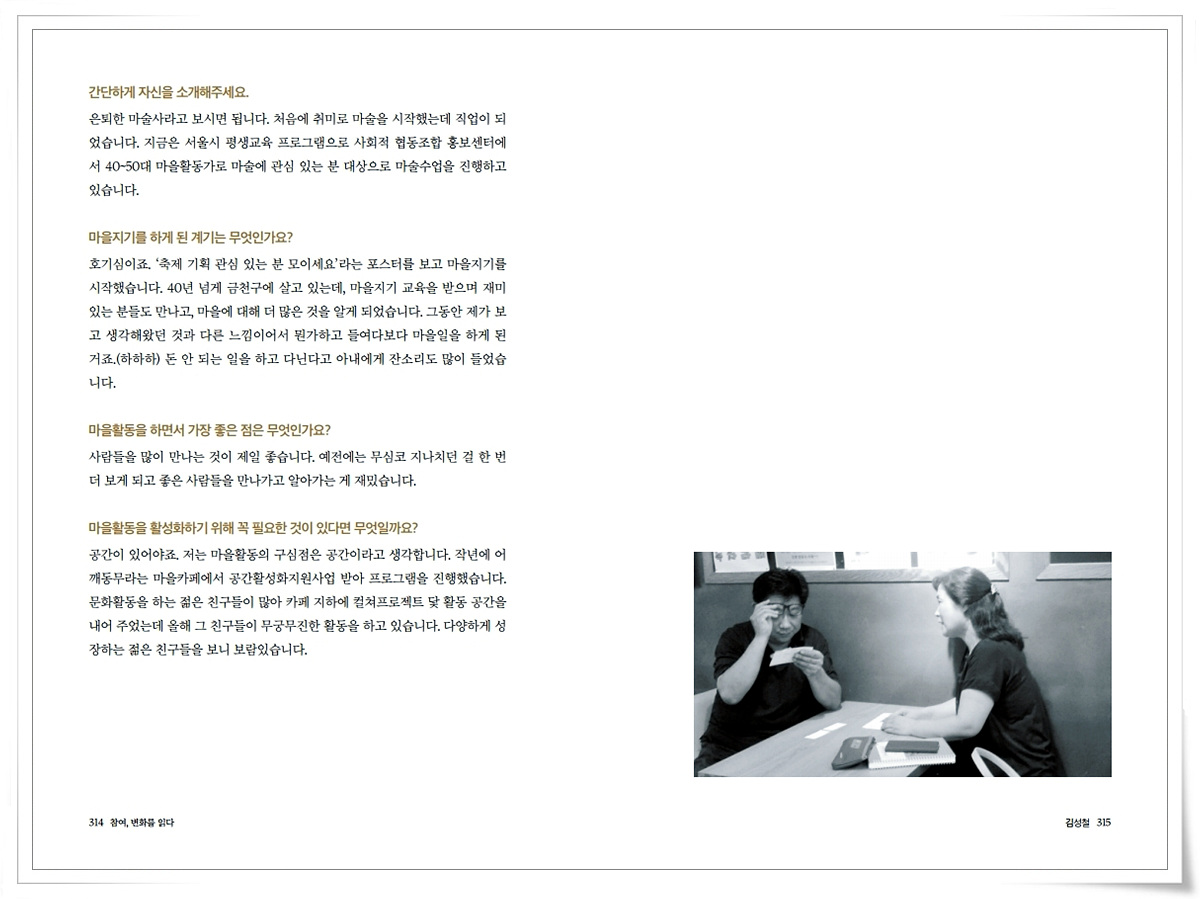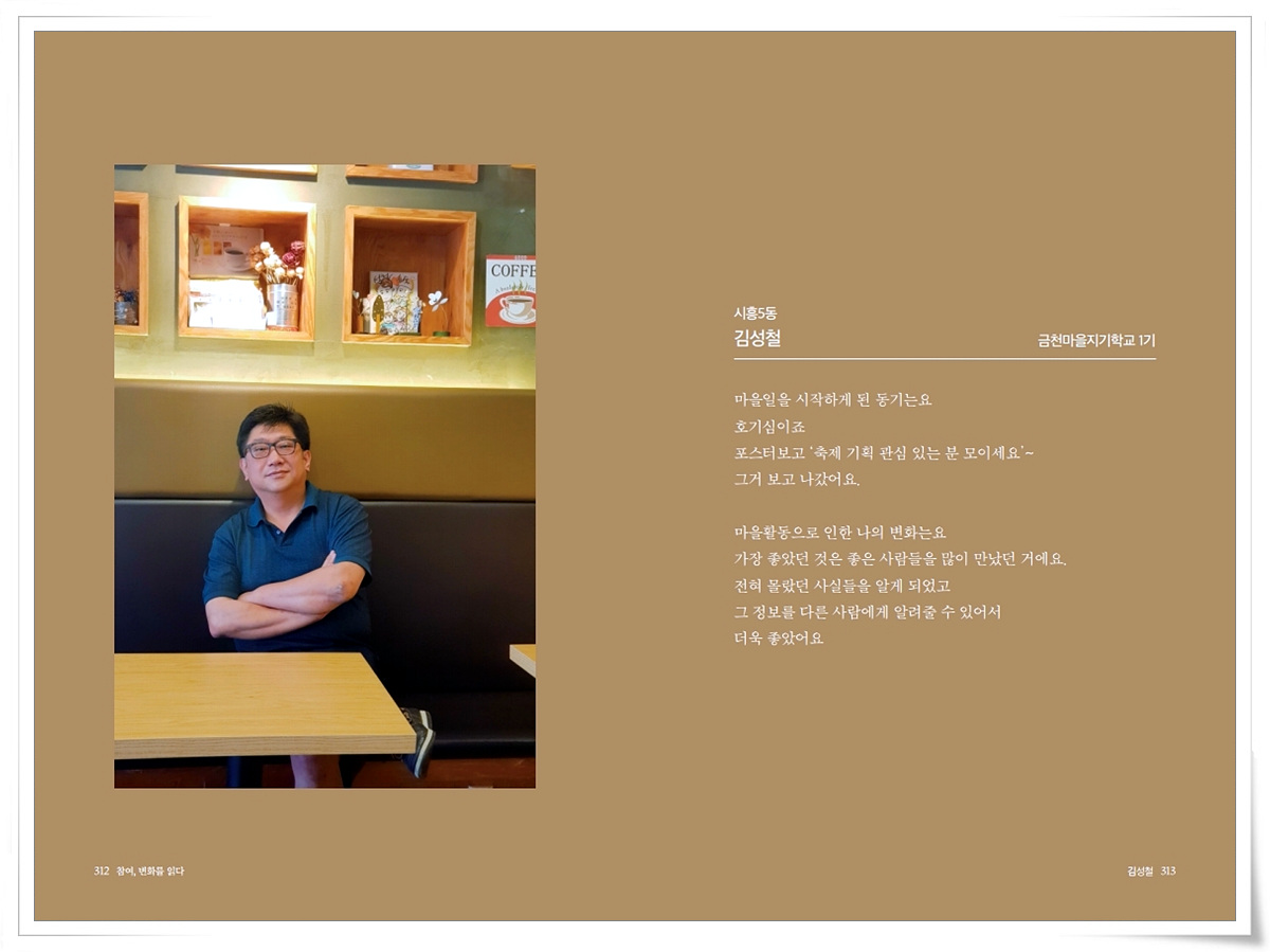 금천사람들 인터뷰 기록집Vol.1_ 시흥5동 김성철 2021-03-18 16:49:39 금천사람들 인터뷰 기록집Vol.1_ 시흥5동 김성철 ▼아래 이미지를 누르시면 크게 보실 수 있습니다 LIST 이전금천사람들 인터뷰 기록집Vol.1_ 시흥5동 류경숙2021.03.18 다음금천사람들 인터뷰 기록집Vol.1_ 시흥4동 조영일2021.03.18