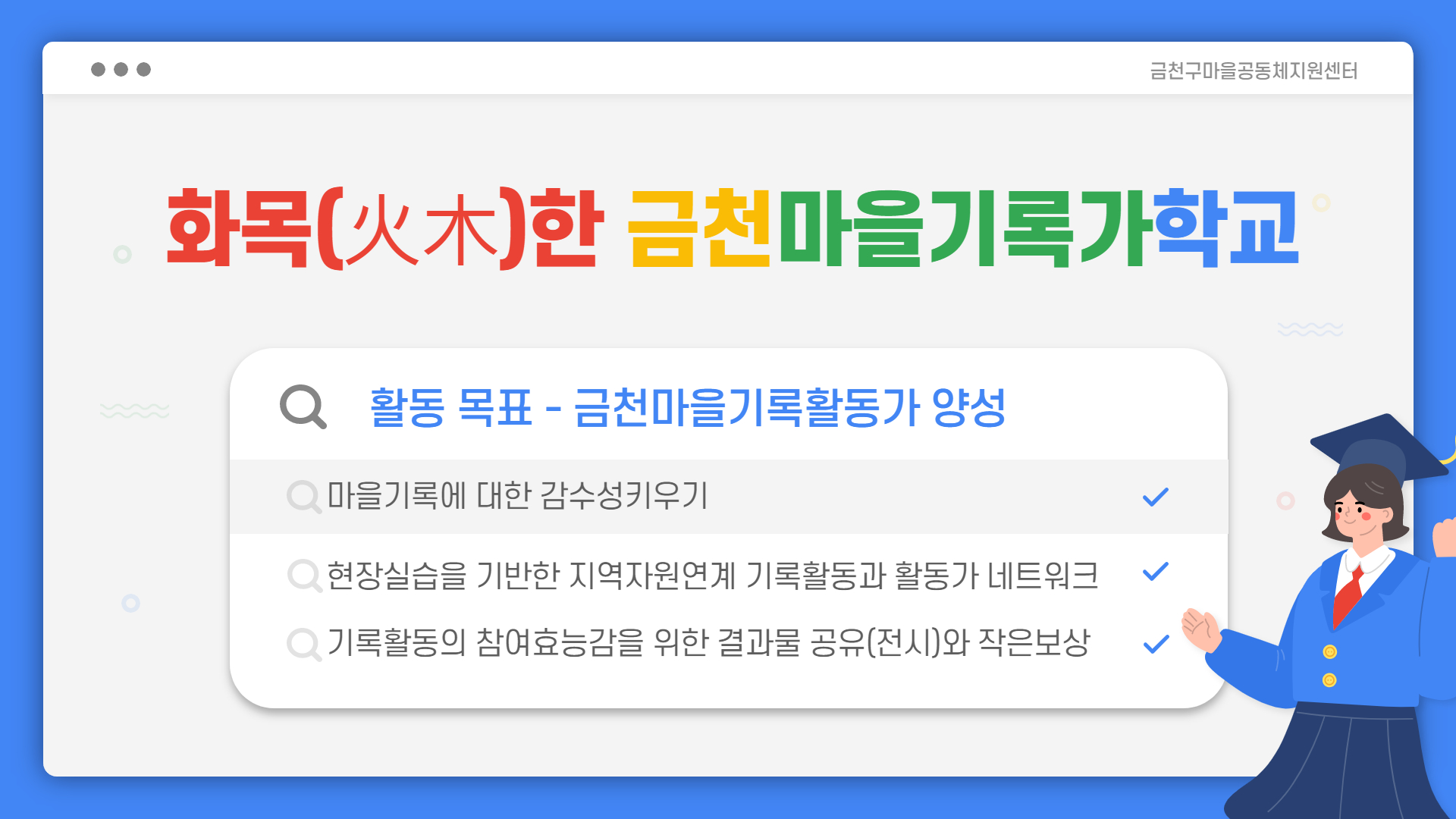 금천마을기록가학교!! 그 대장정이 지난 주 화요일에 막을 내렸습니다!