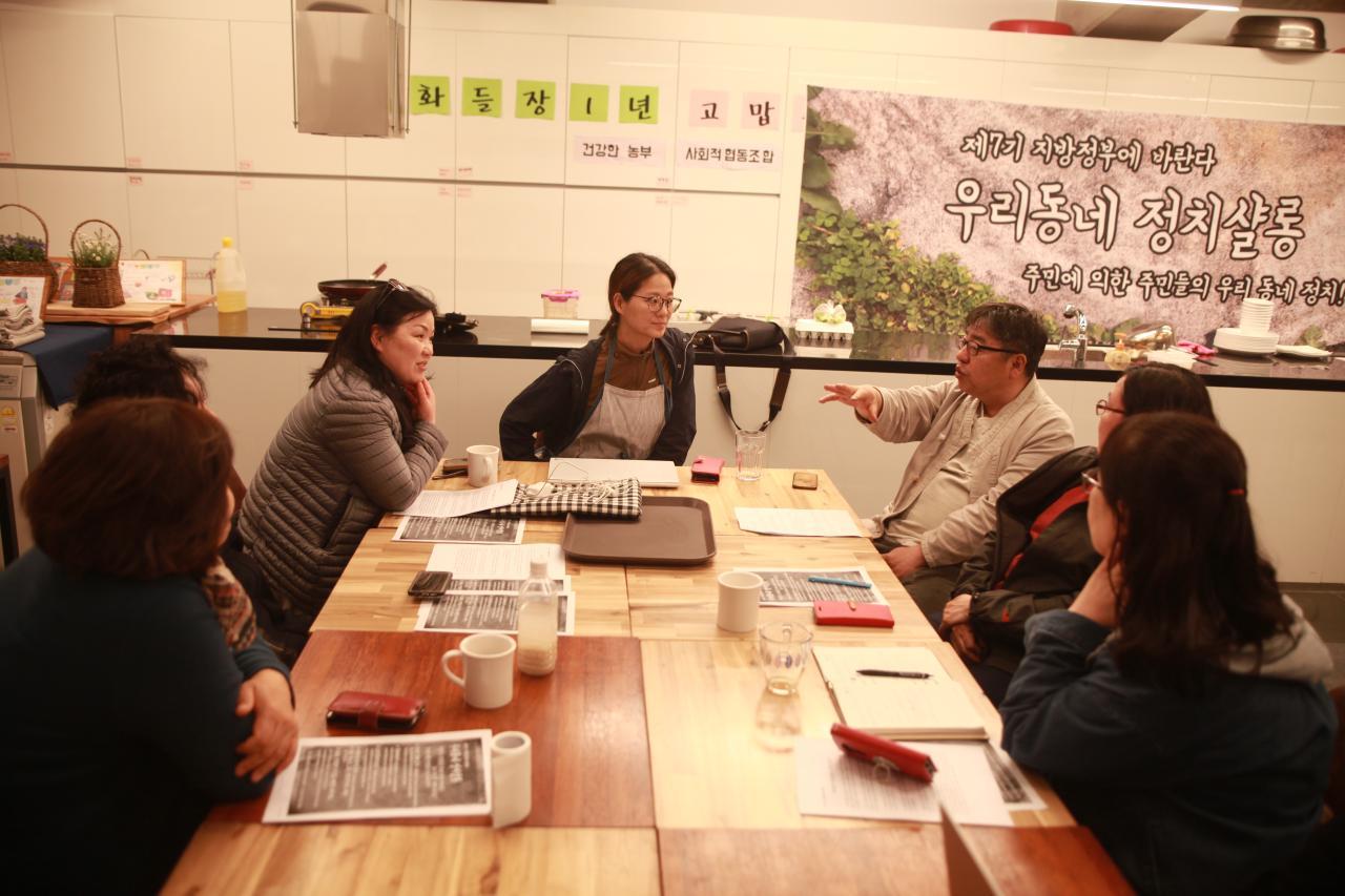 제7기 지방정부에 바란다-우리동네 정치샬롱의 이름으로 각 분야별 좌담회 또는 정책제안발표를 하고 이를 바탕으로 5월10일 저녁7시에 정치축제를 통해 제안하려고 합니다.