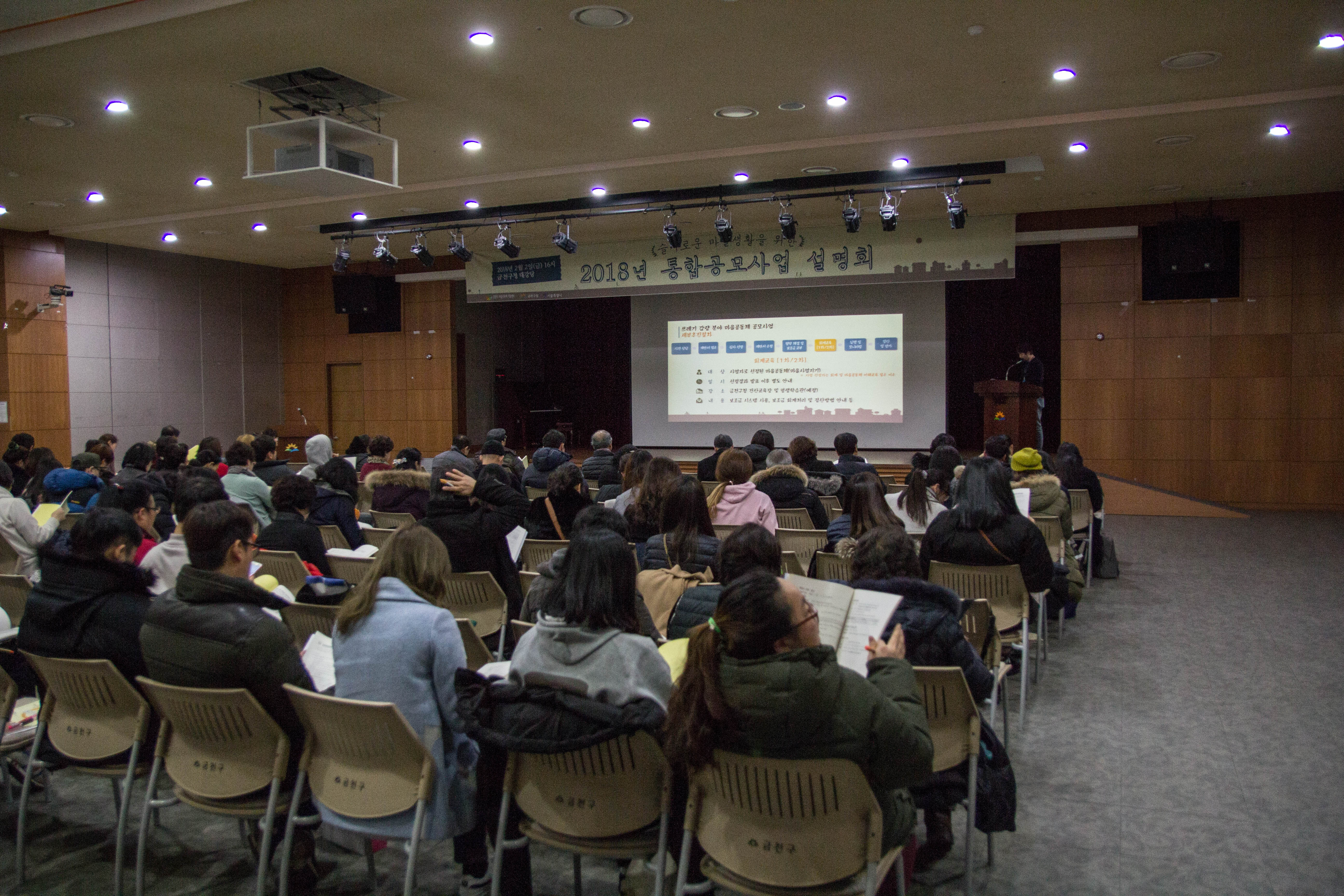 2018-02-02 통합공모사업 설명회 2019-02-01 09:49:10 LIST 이전2018-03-08 소소한 마을강좌 & 마을밥상(2)2019.02.07 다음[성과공유회-연구지원사업] 지속가능한 마을공동체를 위한 연구-공동체명 : 마주(2017-12-18)2019.02.01