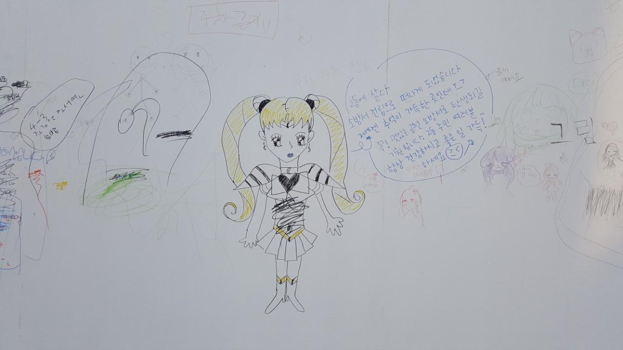 ▷ 대형낙서판에 신나게 낙서하기