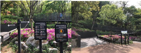산책로는 경사가 완만해서 휠체어를 밀고 오더라도 크게 힘들지 않을 것 같았어요. 저희 엄마는 무릎이 좋지 않지만 산을 정말 좋아하시고, 계단 없이도 높은 곳에 올라가 전망을 볼 수 있어서 무척 기뻐하셨어요.