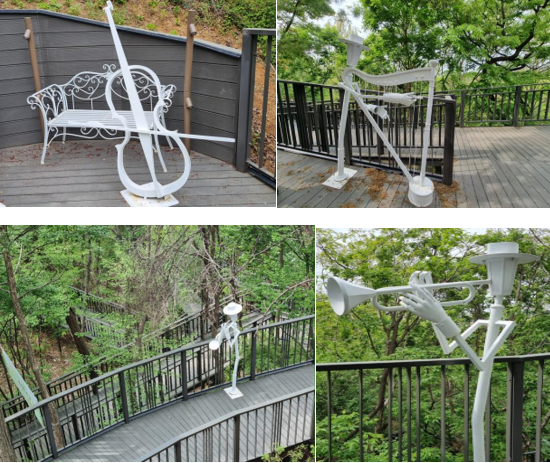 전망대로 가는 길에는 악기 연주자와 관련된 예술 설치물들도 많이 있었어요. 아마 가로등 역할을 하는 것 같은데, 밤이 되면 불이 들어오지 않을까요?