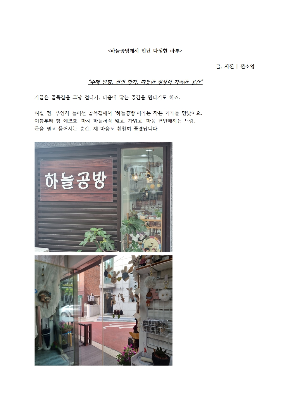 하늘공방에서 만난 다정한 하루
