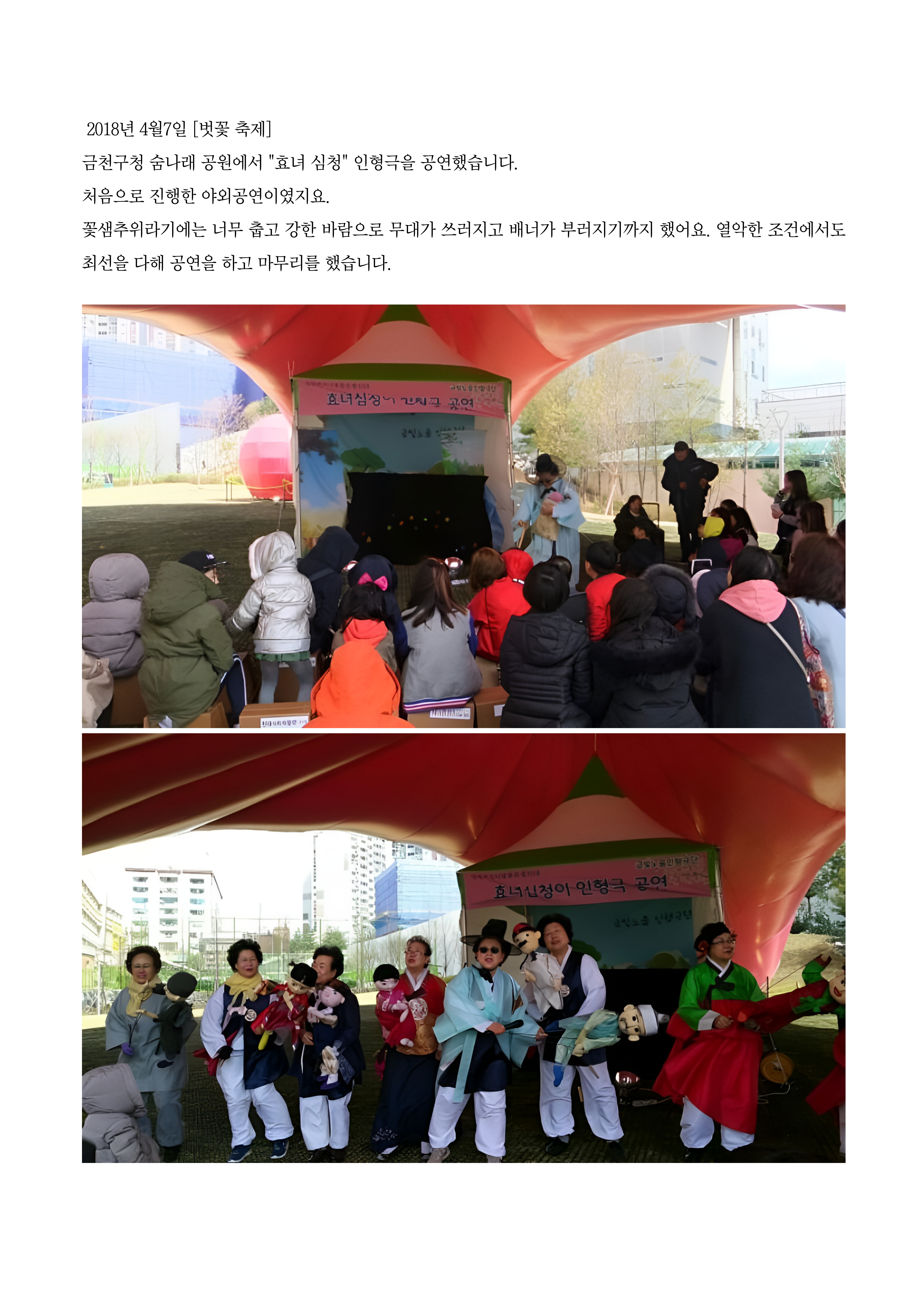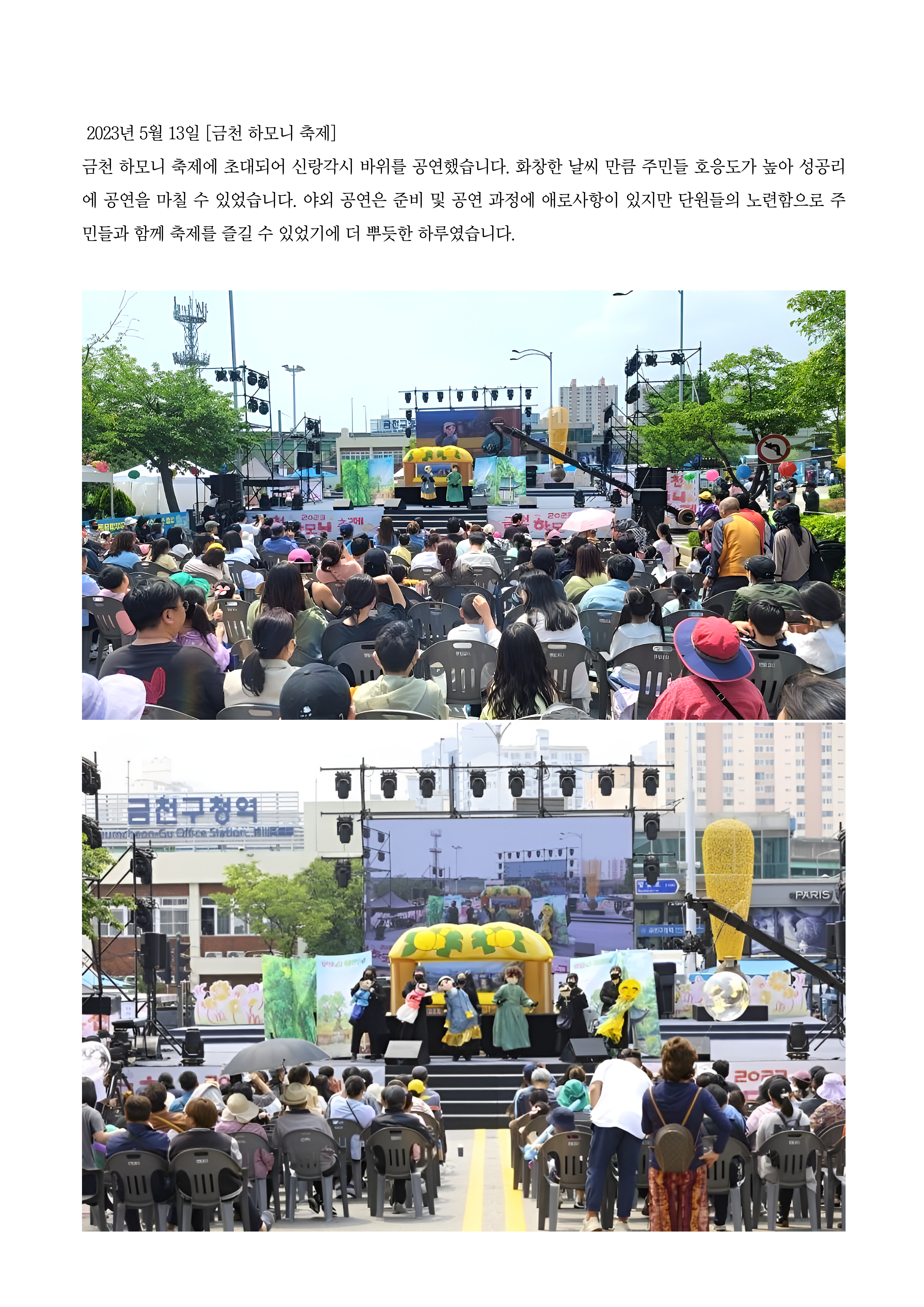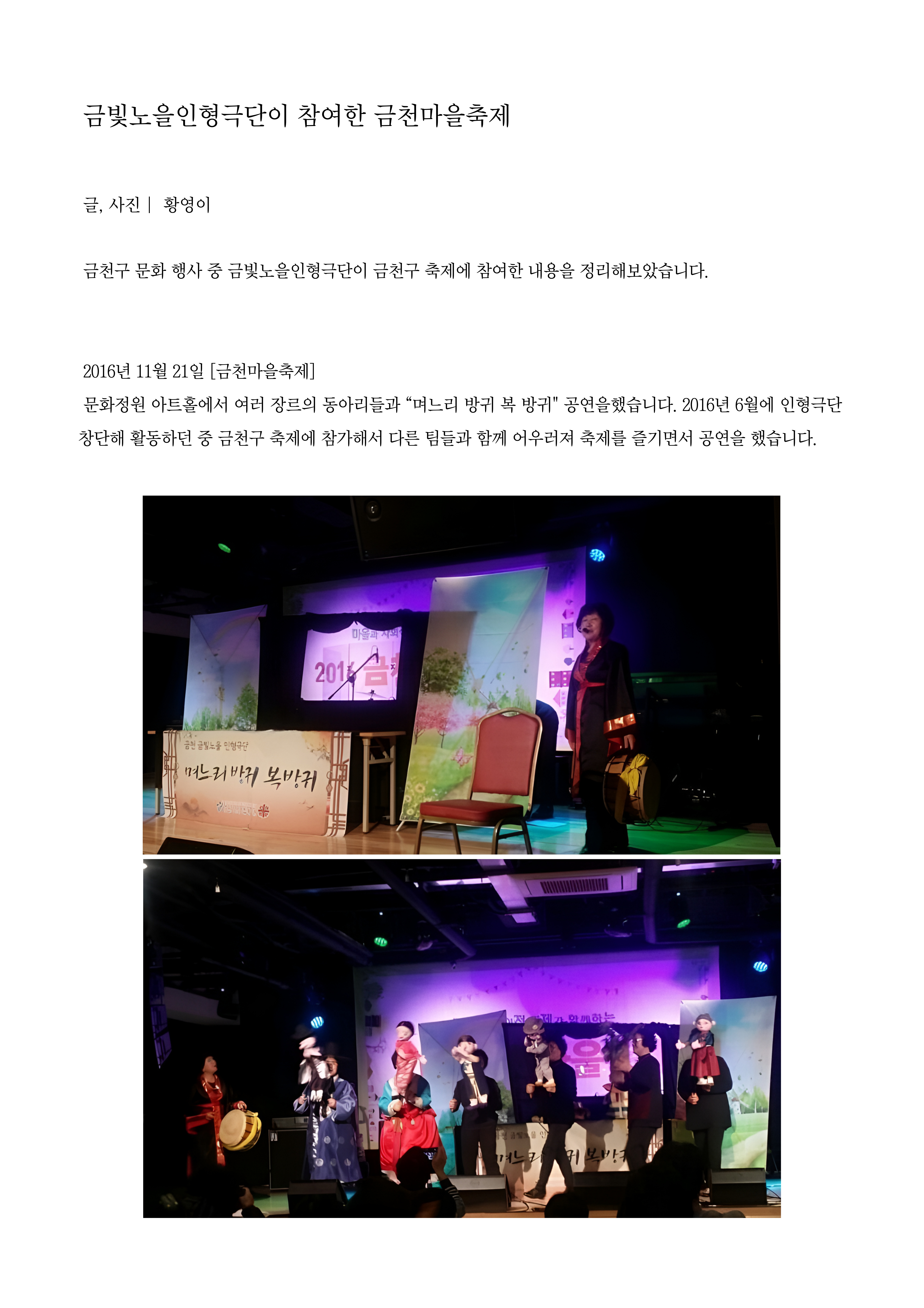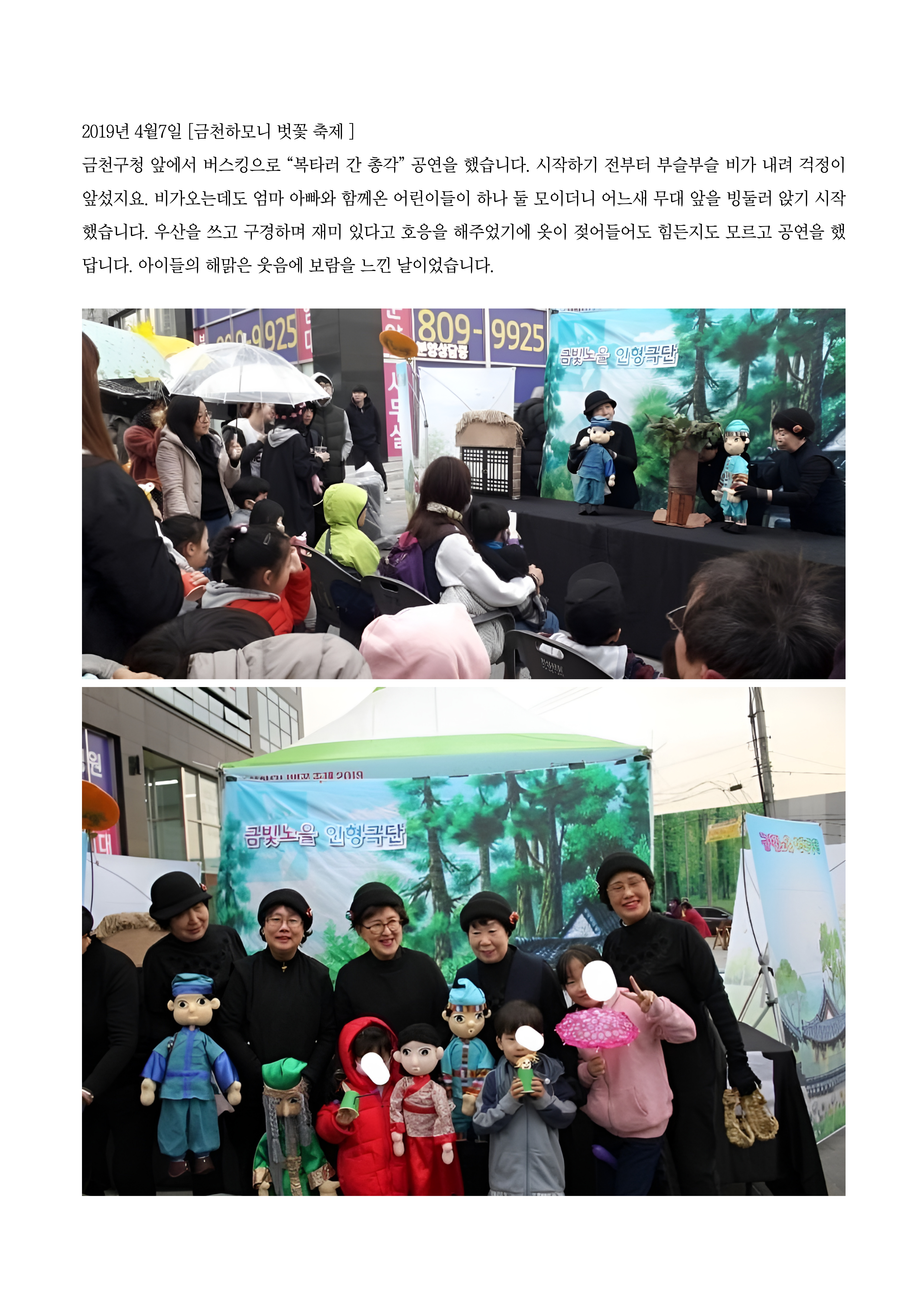 금빛노을인형극단이 참여한 금천마을축제