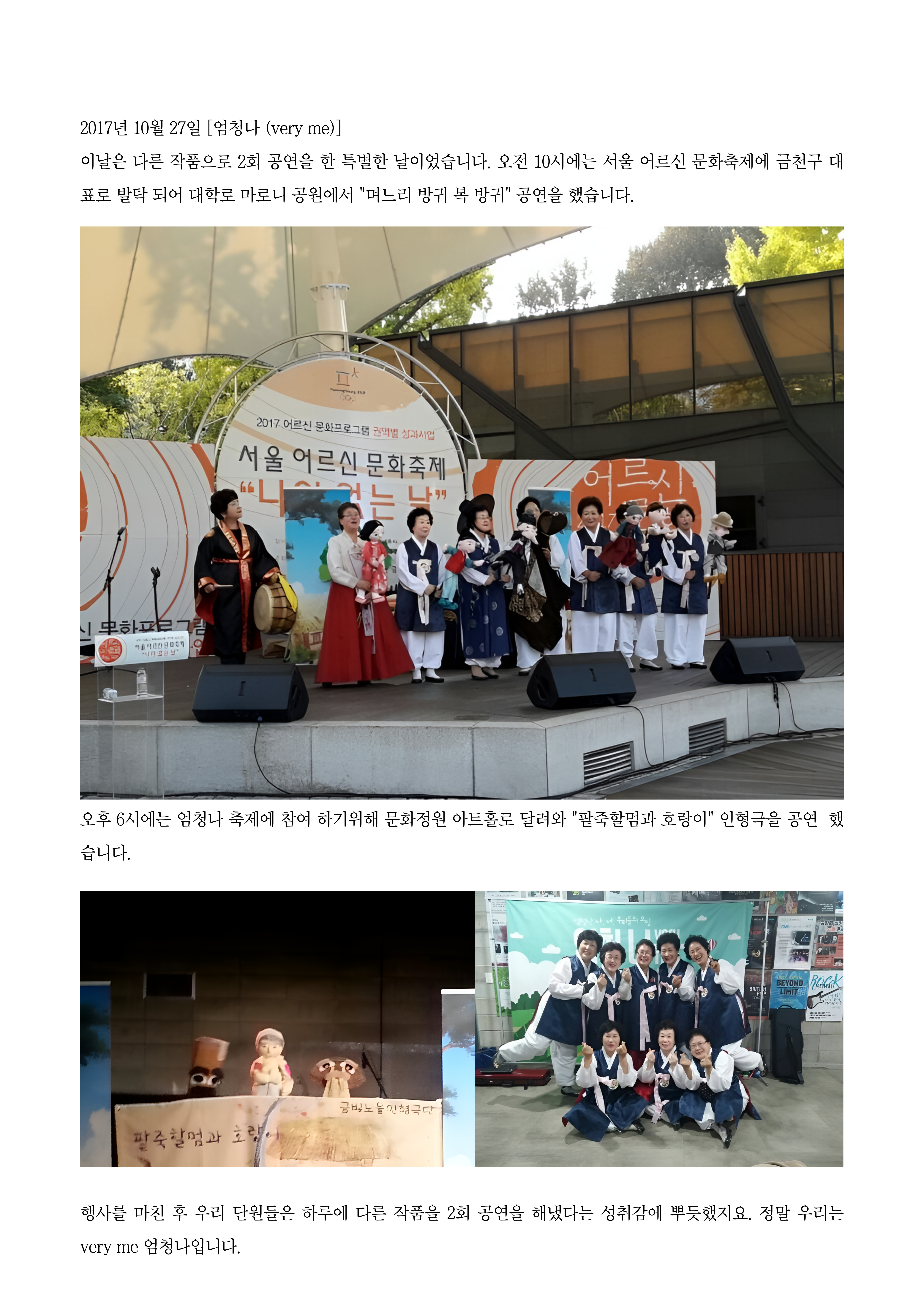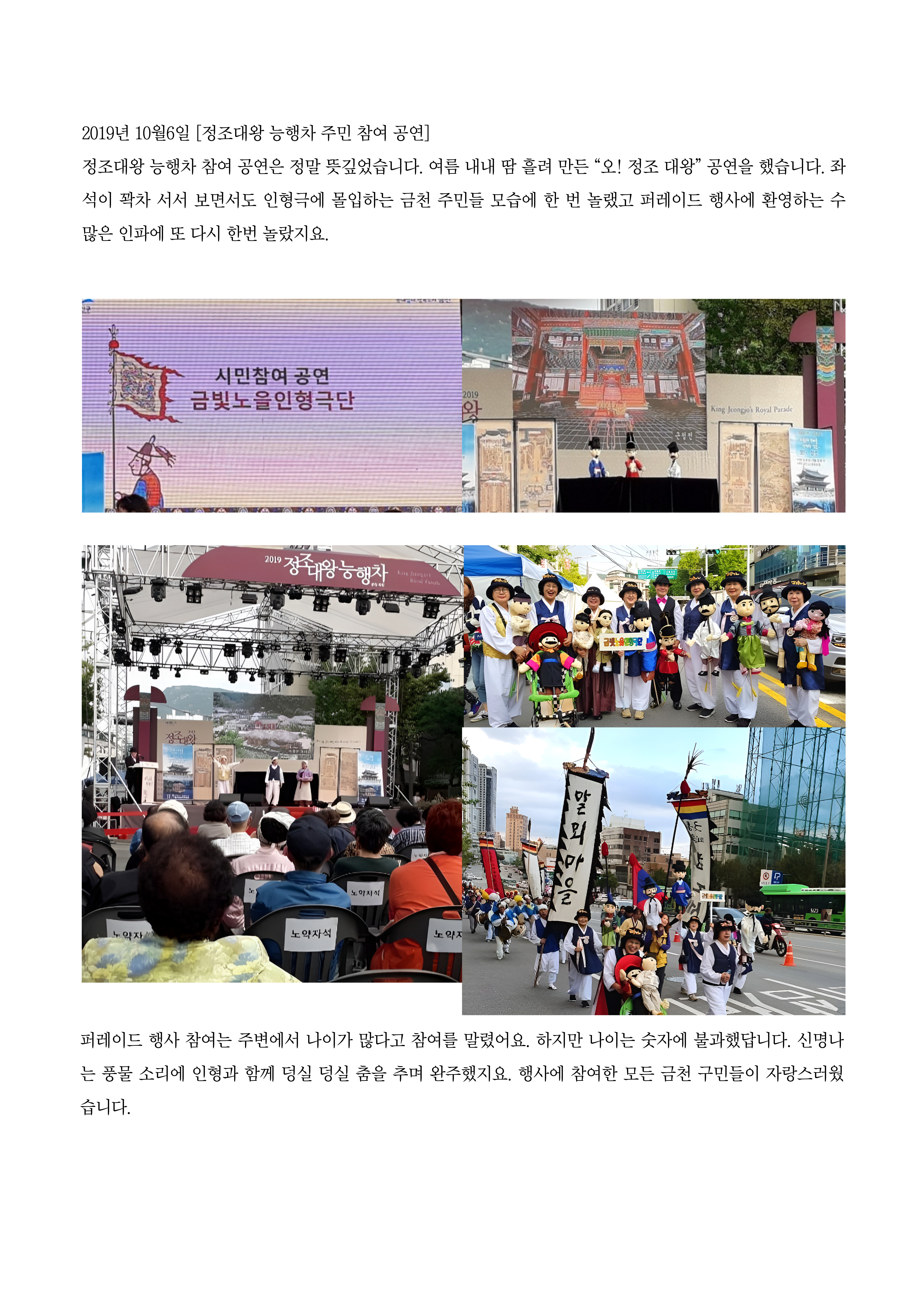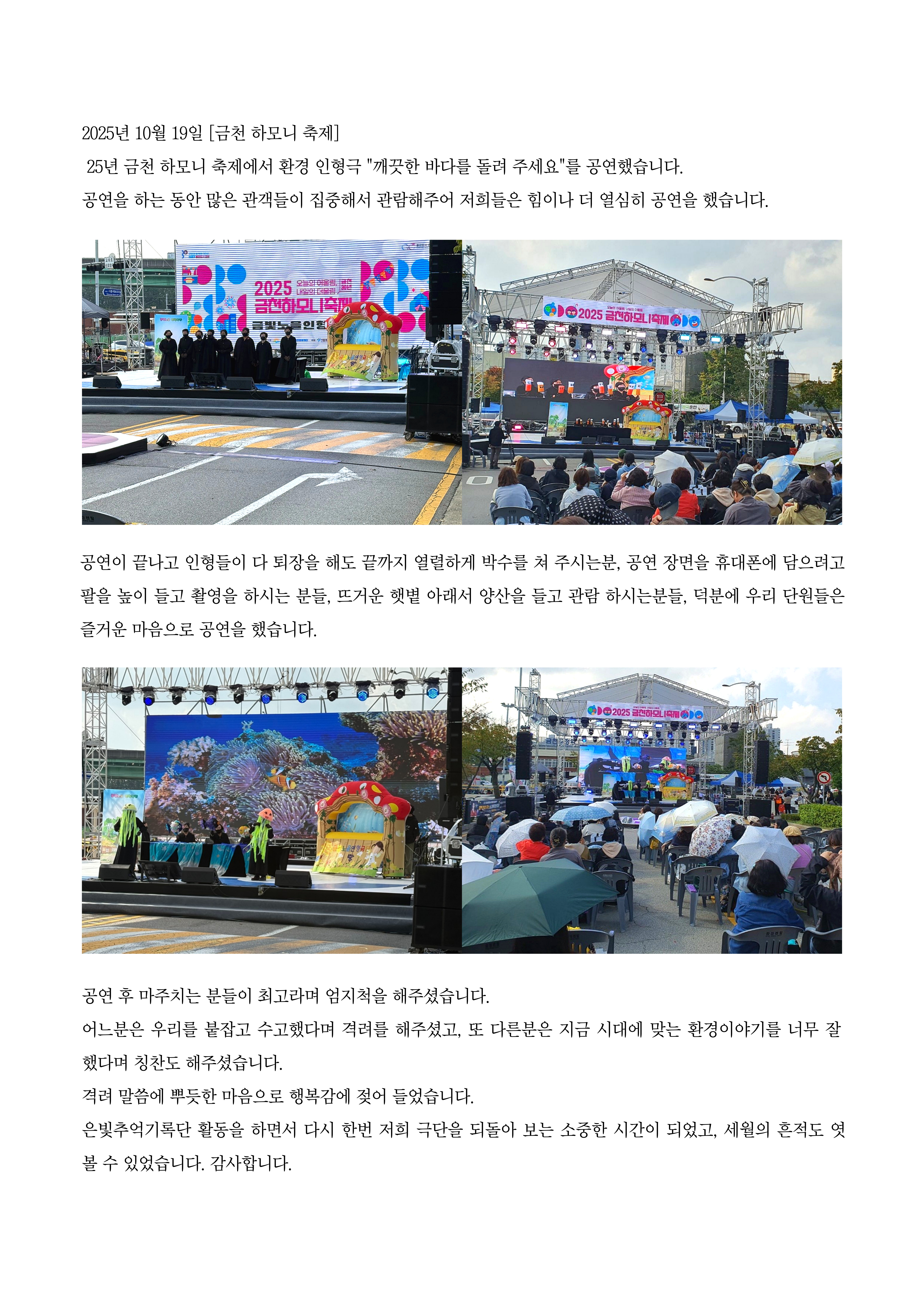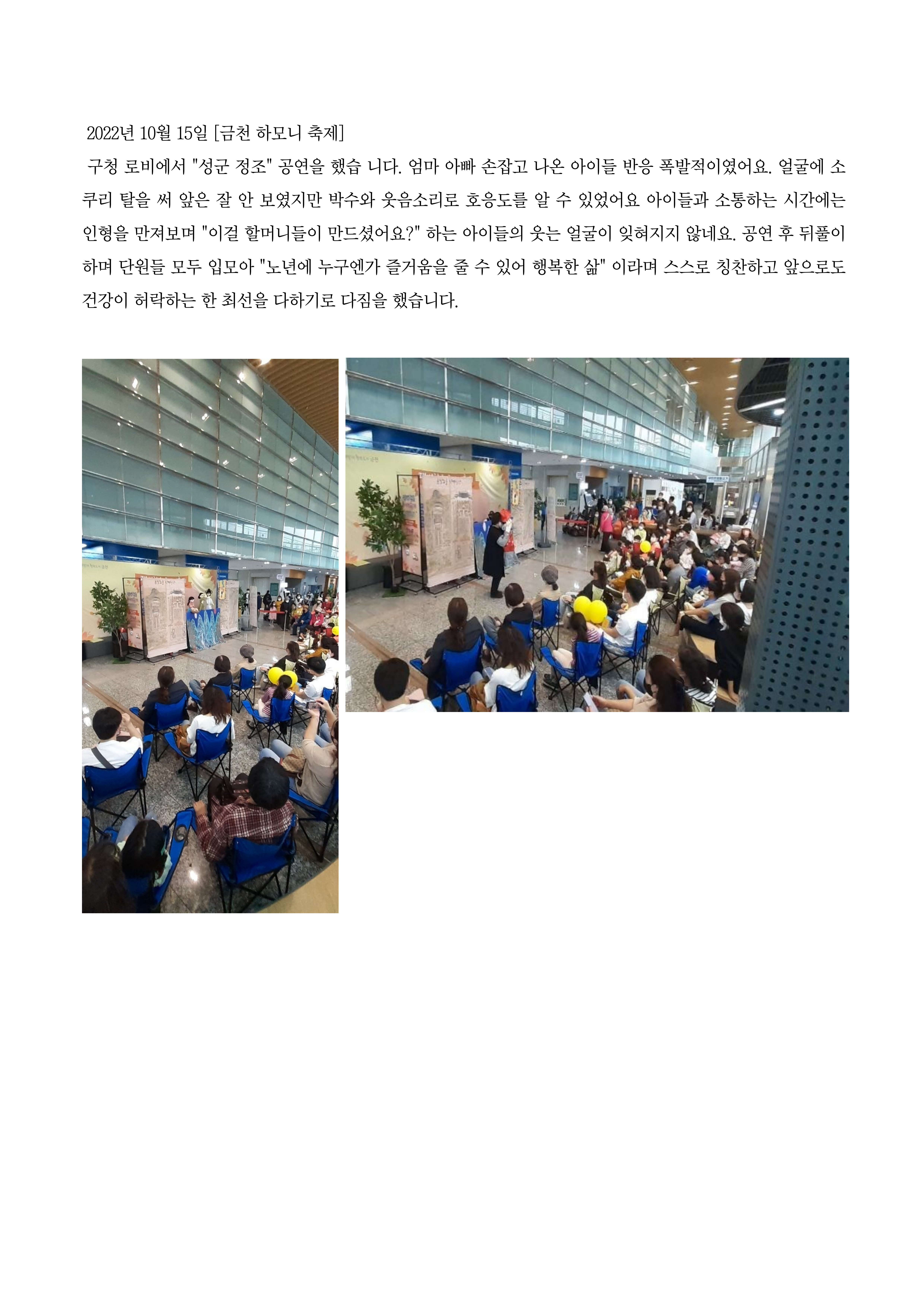 금빛노을인형극단이 참여한 금천마을축제