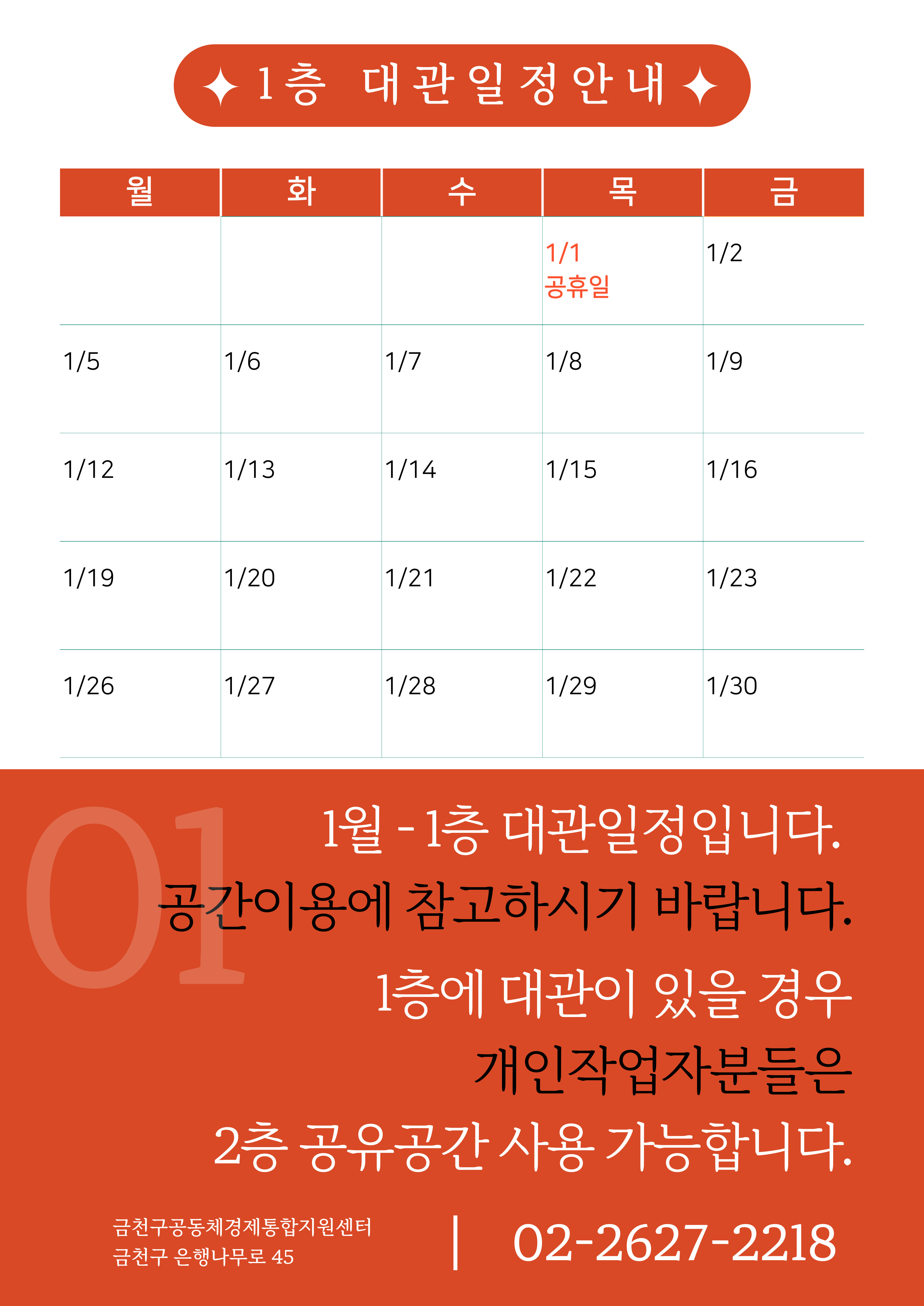[2026년 1월] 1층 대관일정