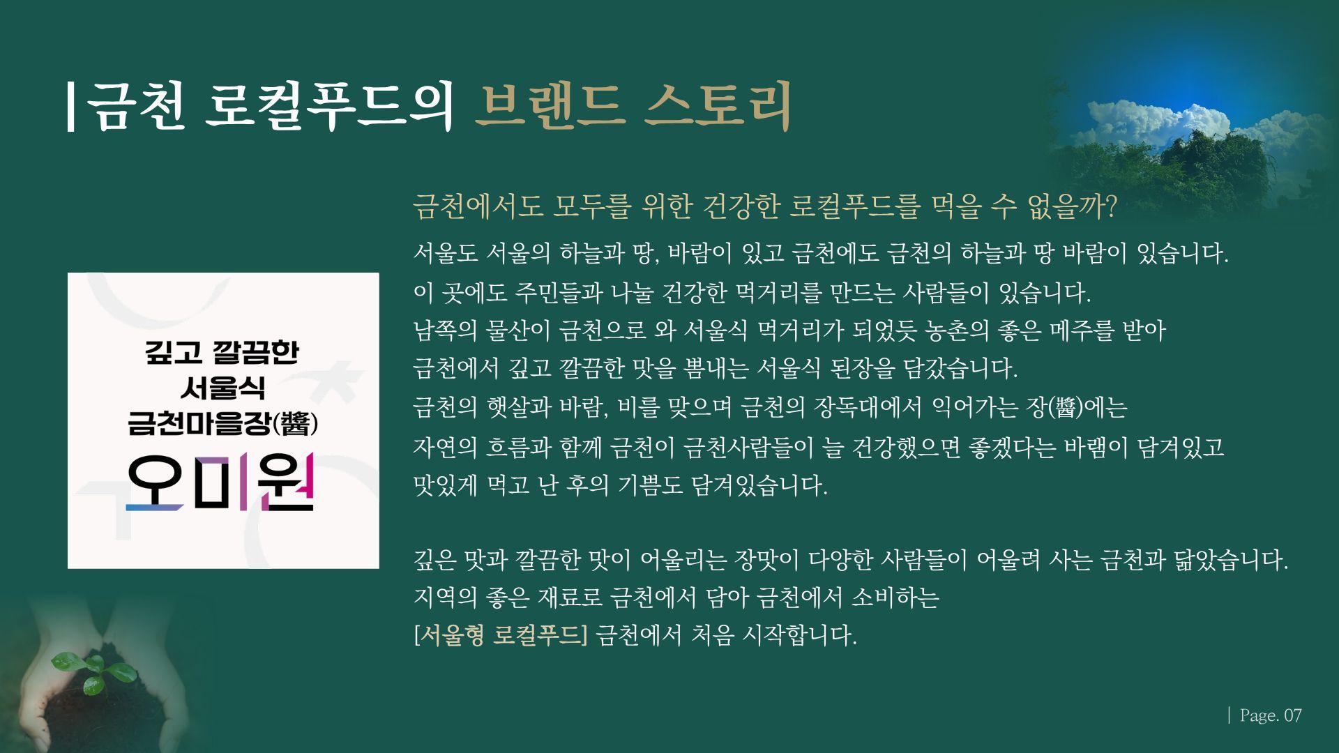 한 눈에 보는 로컬푸드 브랜드 이야기 2025-11-07 17:15:16 LIST 이전AI로 보는 "금천마을된장 오미원" 홍보영상2026.01.02 다음"깊고 깔끔한 서울식 금천마을장 오미원" 브랜드 스토리2025.10.14